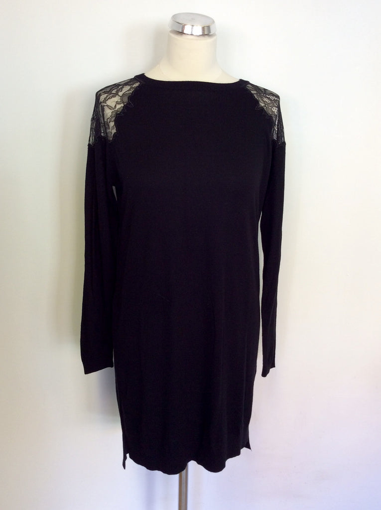 WHISTLES BLACK KNIT LACE SHOULDER DRESS SIZE 8