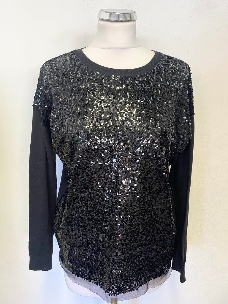 WHISTLES BLACK SEQUIN FRONT LONG SLEEVED JUMPER