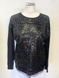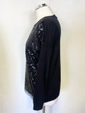 WHISTLES BLACK SEQUIN FRONT LONG SLEEVED JUMPER SIZE 14