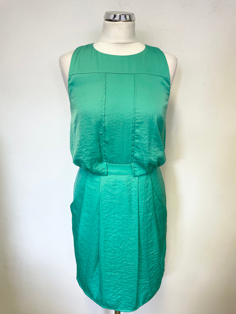 WHISTLES GREEN SLEEVELESS REAR ZIP FEATURE SHORT DRESS SIZE 6