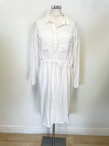 WHISTLES WHITE COLLARED LONG SLEEVED BUTTON FRONT SHIRT DRESS SIZE 12