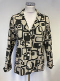 YELLOW LABEL LIGHT GREY & BLACK PRINT COLLARED LONG SLEEVED SHIRT SIZE S