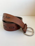 UNBRANDED BROWN LASER CUT OUT WITH CONTRAST THREADED WEAVE LEATHER BELT