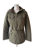 BARBOUR FEATHERWEIGHT WINTER GRACE KHAKI GREEN BELTED HOODED JACKET SIZE 12