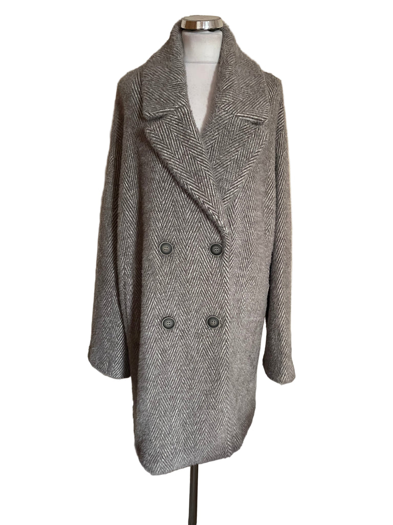 BRAND NEW WITH TAGS NICOLE FARHI GREY HERRINGBONE SUPERSOFT BRUSHED FABRIC COAT