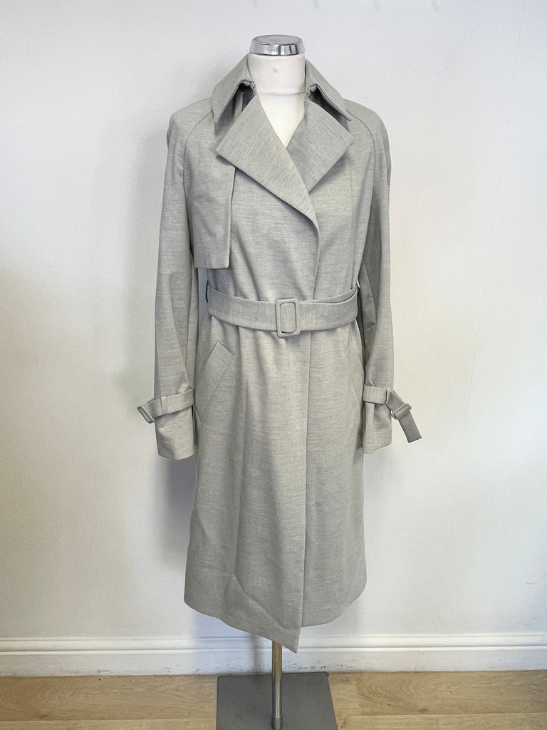 BRAND NEW WAREHOUSE LIGHT GREY UNLINED BELTED TRENCH COAT SIZE 6 WILL FIT LARGER