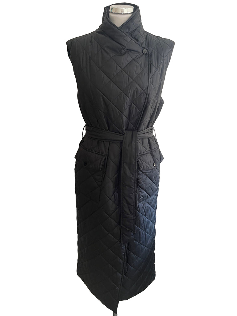 GANT BLACK QUILTED SLEEVELESS BELTED LONG GILET SIZE XS