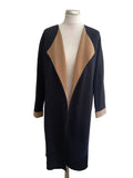 HOBBS NAVY BLUE & CAMEL UNLINED EDGE TO EDGE KNIT CARDIGAN/JACKET