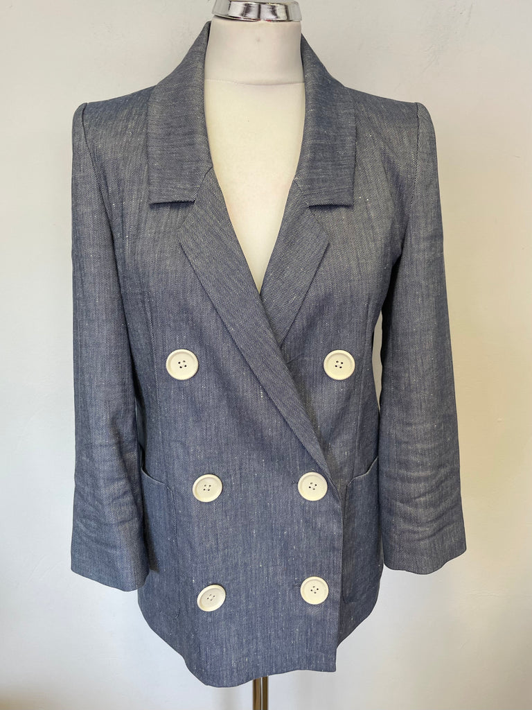 MARKS & SPENCER LTD EDITION DENIM BLUE LINEN BLEND BLAZER JACKET