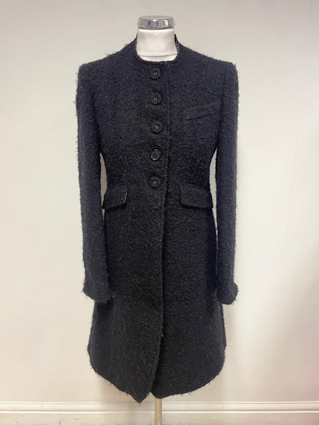 PAUL SMITH BLUE COLLECTION BLACK COLLARLESS MOHAIR &WOOL MIX COAT SIZE 42 UK 10