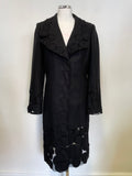 PER UNA BLACK WOOL BLEND FITTED APPLIQUE MESH HEMLINE DETAILED COAT SIZE 10