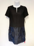 BRAND NEW CARVEN BLACK & DARK BLUE SHORT SLEEVE SHIFT DRESS SIZE 34 FIT UK 8/10