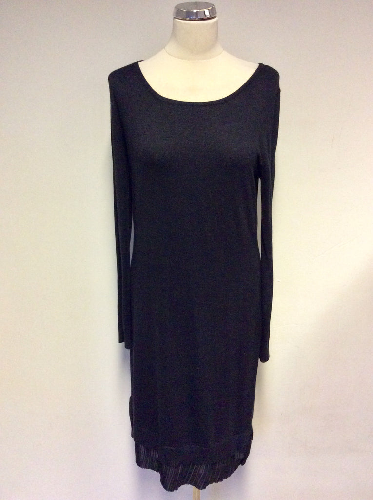 BRAND NEW GRAY & WILLOW DARK GREY & BLACK PLEATED FRILL KNIT DRESS SIZE 12