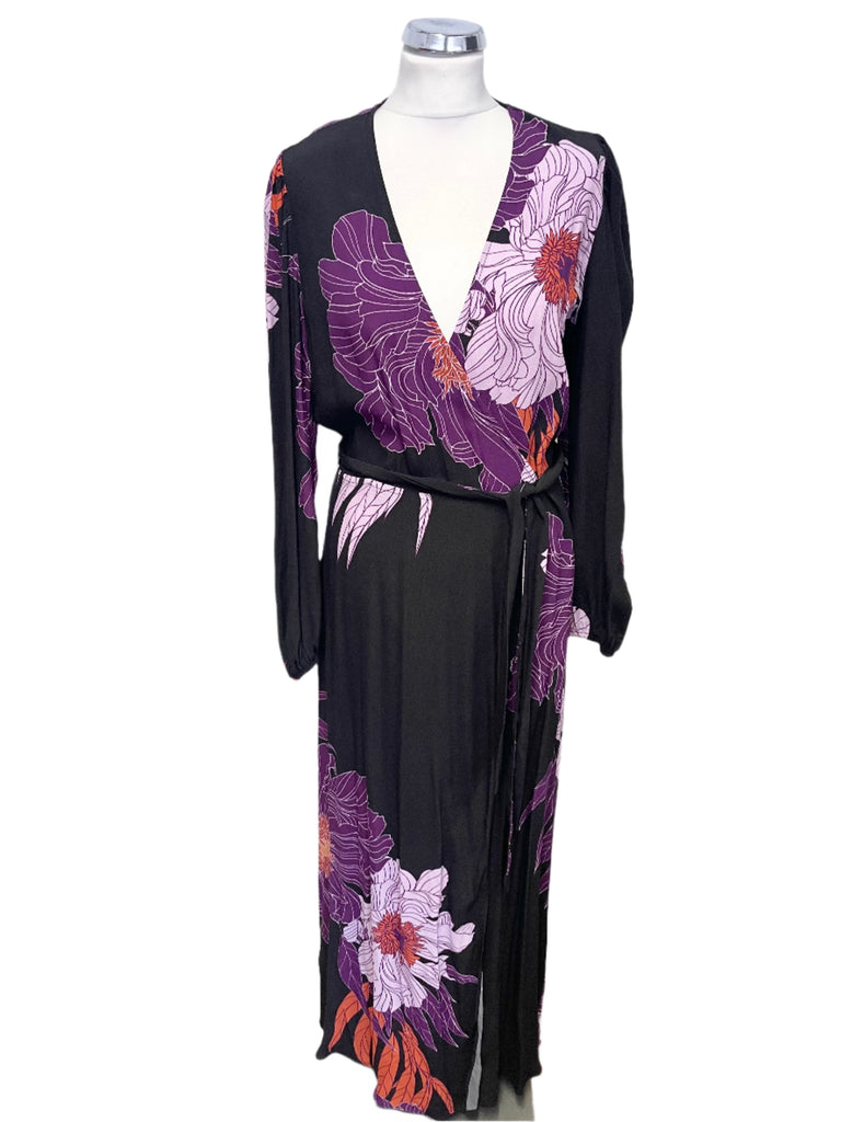 BRAND NEW KAREN MILLEN BLACK FLORAL PRINT LONG SLEEVED WRAP DRESS SIZE 10