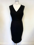 LK BENNETT CELIA BLACK BOUCLE WOOL TRIM FRONT SLEEVELESS PENCIL DRESS SIZE 10