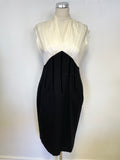 LK BENNETT IVORY & BLACK SILK & WOOL SLEEVELESS PENCIL DRESS SIZE 12