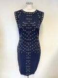 MARCIANO NAVY BLUE EYELET TRIM SLEEVELESS PENCIL DRESS SIZE 6 UK 10