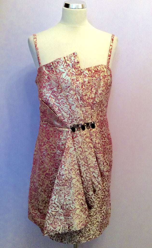 Monsoon Rose Pink & Pale Gold Print Strappy / Strapless Dress Size 18