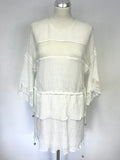 STEVIE MAY WHITE COTTON & LINEN LACE TRIM 3/4 SLEEVE TIERED MINI DRESS SIZE M