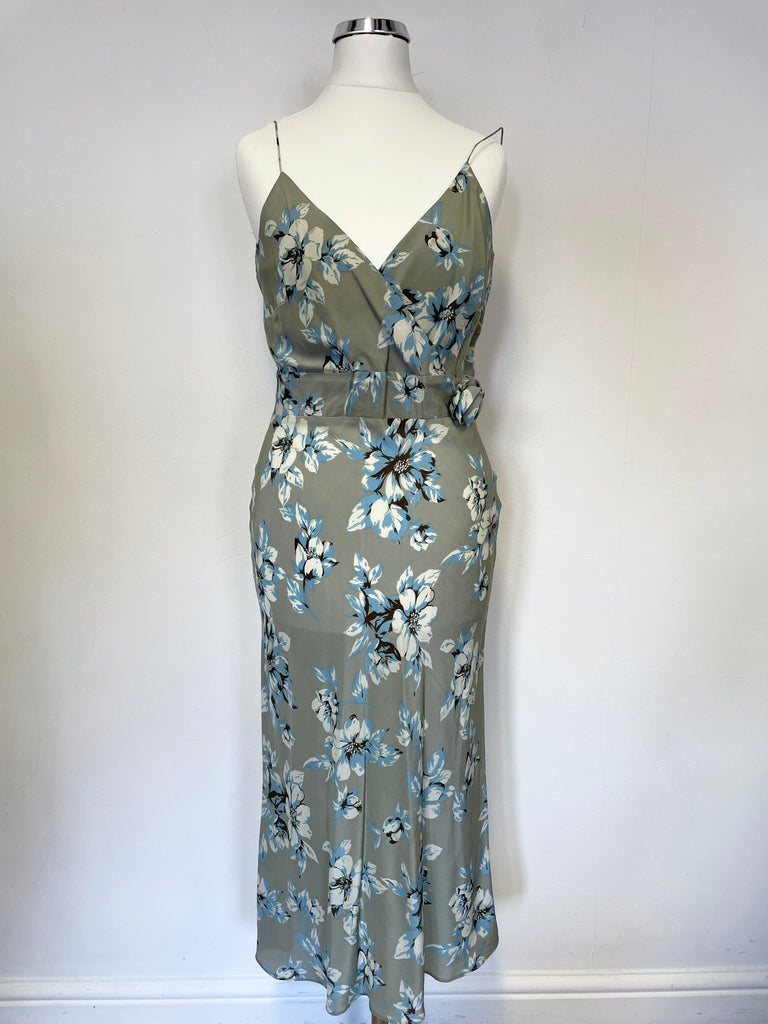 WHISTLES EXPRESS GREEN & BLUE FLORAL PRINT SILK STRAPPY SLIP DRESS SIZE 10