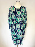 WHISTLES GREEN,IVORY & BLUE SILK REAR ZIP FEATURE 3/4 SLEEVE PENCIL DRESS SIZE 12