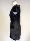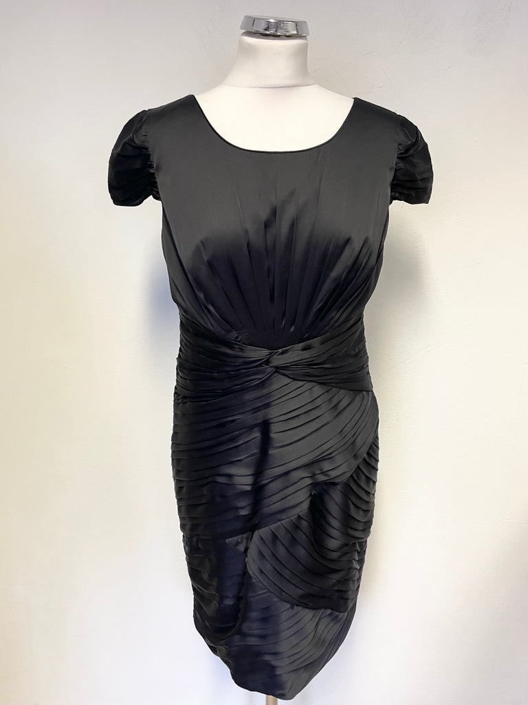COAST BLACK SATIN CAP SLEEVED PLEAT DETAILED PENCIL DRESS SIZE 12