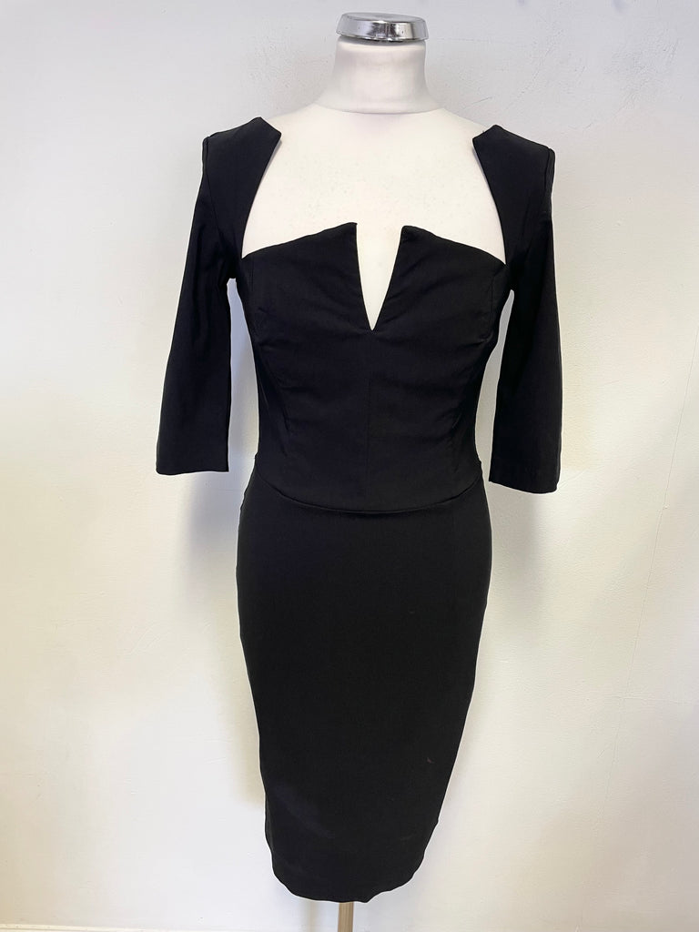 DIVA CATWALK BLACK BONED BODICE HALF SLEEVE BODYCON DRESS SIZE M