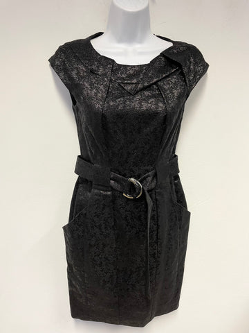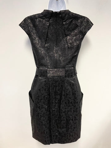 BRAND NEW TED BAKER TAMMARA BLACK METALLIC EMBROIDERED MIDI DRESS SIZE 6/8