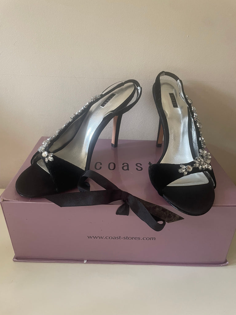 BRAND NEW COAST BLACK VELVET DIAMANTE TRIM SLINGBACK HEELS SIZE 5/38