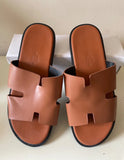 BRAND NEW DESIGNER INSPIRED TAN BROWN LEATHER SLIDERS SIZE 7/40