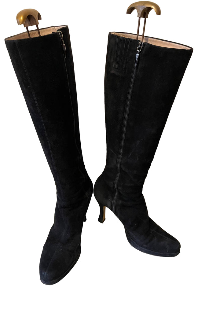 HOBBS BLACK SUEDE KNEE LENGTH HEEL BOOTS SIZE 6/39