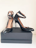 KURT GEIGER BLACK PATENT LEATHER 2 ANKLE STRAP HEELS
