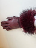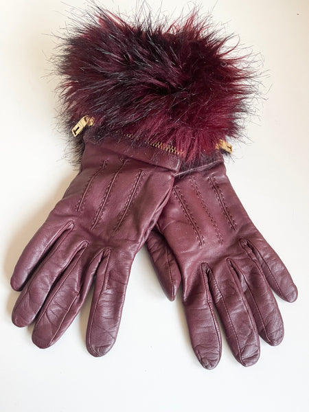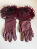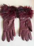 TED BAKER OXBLOOD LEATHER & FAUX FUR TRIM GLOVES SIZE M/L