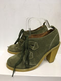 BERTIE GREEN SUEDE LACE UP HEELS SIZE 6/39