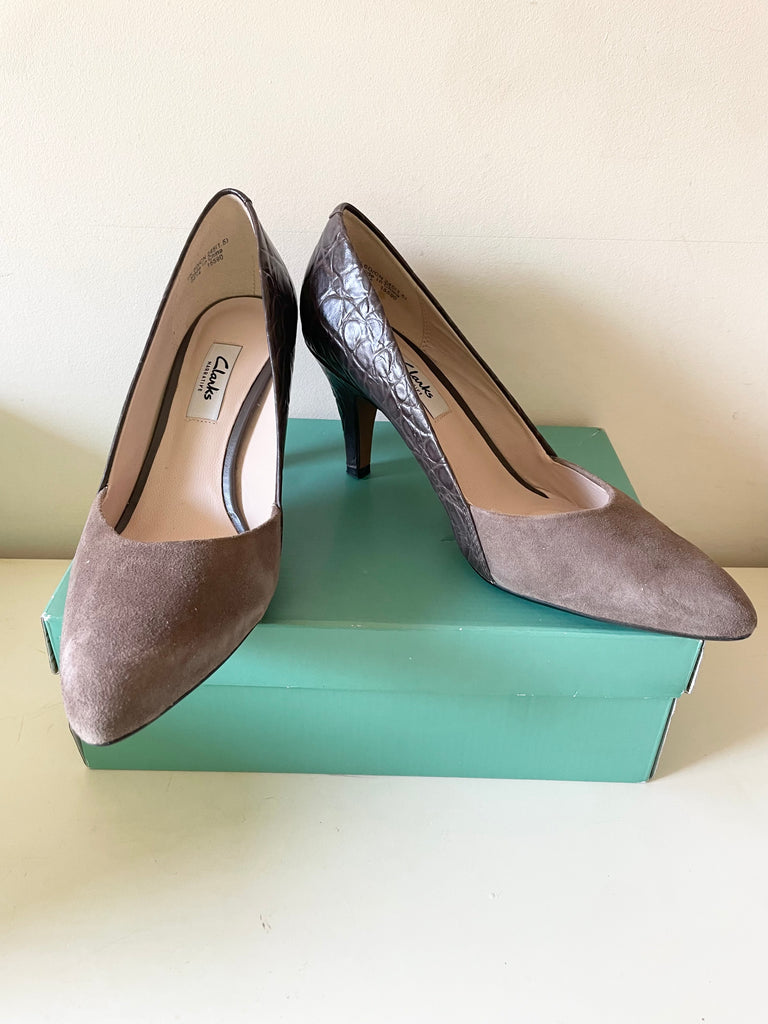 CLARKS BROWN SUEDE & LEATHER COURT SHOES