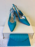 JACQUES VERT TURQOUISE SATIN SLINGBACK HEELS & MATCHING BAG