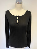 LK BENNETT BLACK SILK,COTTON & CASHMERE BOW TRIM FINE KNIT JUMPER SIZE M