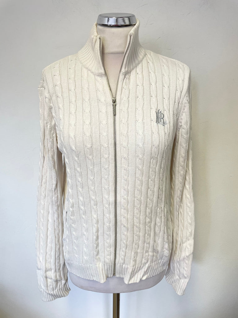 RALPH LAUREN IVORY CABLE KNIT ZIP FRONT LONG SLEEVED CARDIGAN SIZE L