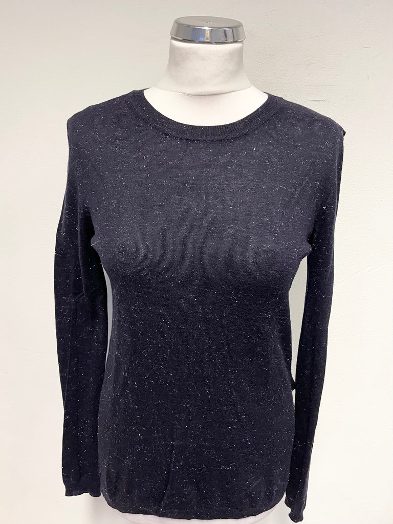 WHISTLES BLACK METALLIC FINE KNIT LONG SLEEVE JUMPER SIZE 10