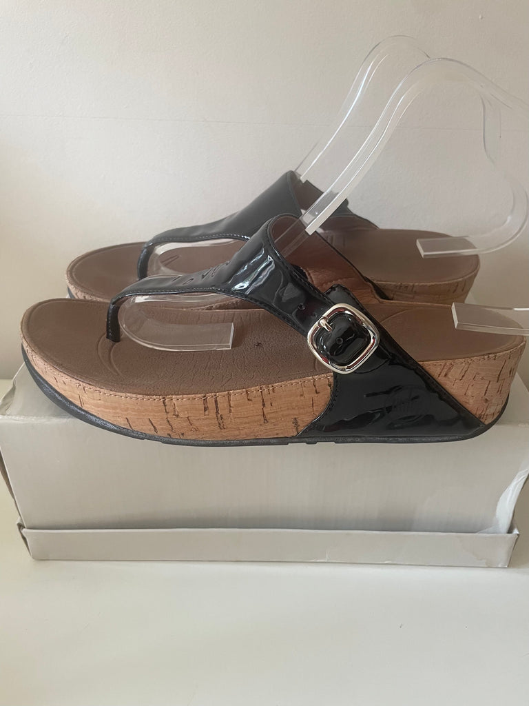 FIT FLOP BLACK PATENT LEATHER TOE POST MULES SIZE 6/39