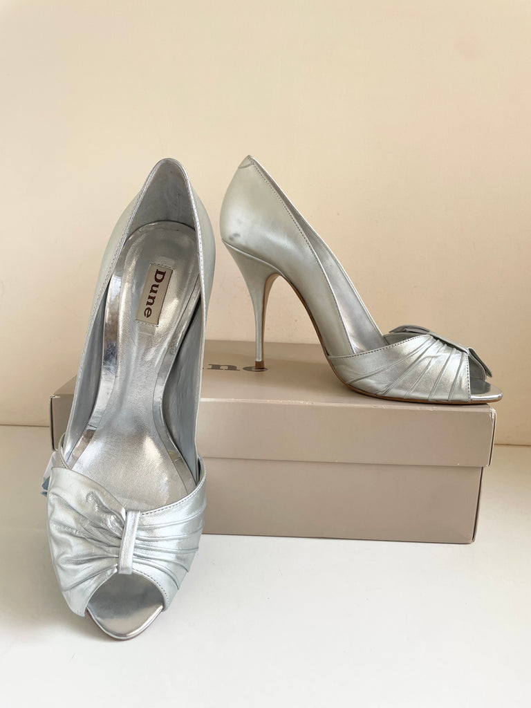 DUNE SILVER LEATHER PEEPTOE HEELS SIZE 7.5/41