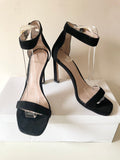 STUART WEITZMAN BLACK SUEDE ANKLE STRAP HIGH HEEL SANDALS