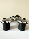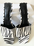 TONY BIANCO AUSTRALIA BLACK & WHITE ZEBRA PRINT OPEN TOE HEELED MULES SIZE 6/39