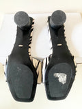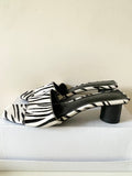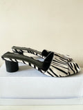 TONY BIANCO AUSTRALIA BLACK & WHITE ZEBRA PRINT OPEN TOE HEELED MULES