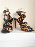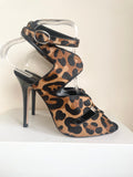 BRAND NEW REISS BROWN LEOPARD PRINT PONYSKIN LEATHER ANKLE STRAP HIGH HEEL SANDALS