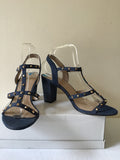 CARVELA DENIM BLUE WITH GOLD STUD TRIM STRAPY BLOCK HEEL SANDALS SIZE 7.5/ 41