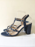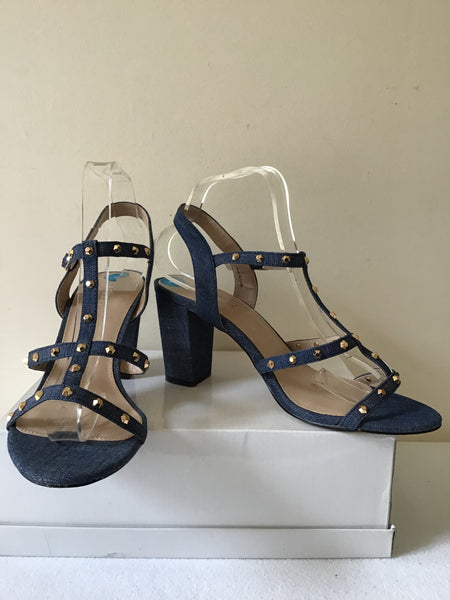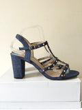 CARVELA DENIM BLUE WITH GOLD STUD TRIM STRAPY BLOCK HEEL SANDALS