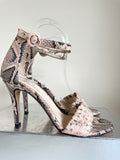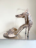 DANIEL PALE PEACH & BLACK SNAKESKIN PRINT LEATHER STRAPPY HEEL SANDALS