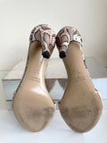 DANIEL PALE PEACH & BLACK SNAKESKIN PRINT LEATHER STRAPPY HEEL SANDALS SIZE 4/37
