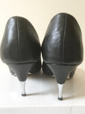 FRENCH CONNECTION BLACK LEATHER PEEPTOE SILVER TIP HEELS SIZE 6/39